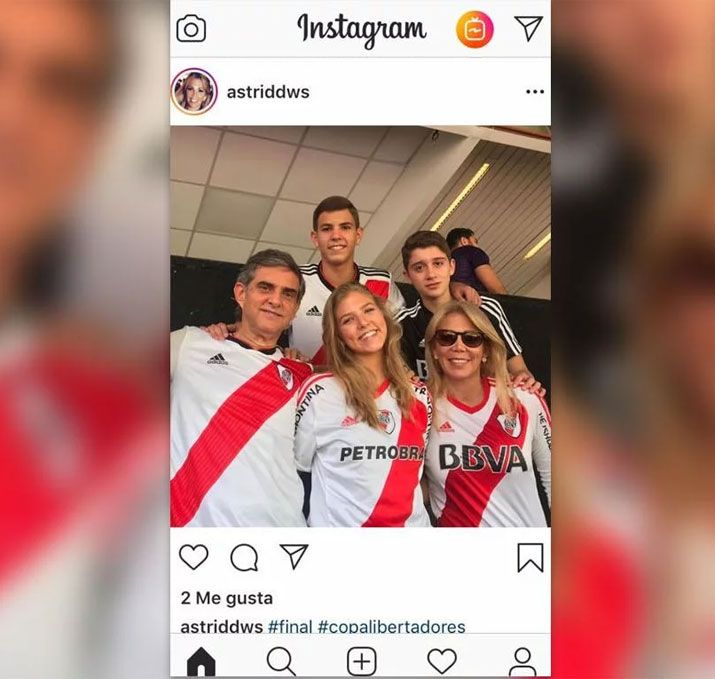 Astrid Domínguez, la hermana del presidente de la @CONMEBOL con la camiseta de River. Es la persona que está con lentes.