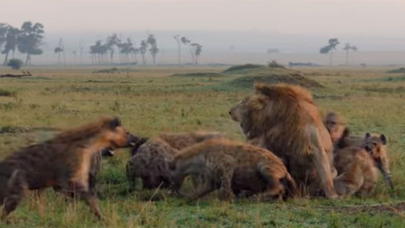 Red, el león, se defendió de todo ataque, pero no fue suficiente ya que eran demasiadas hienas. El programa Dynastis de la BBC Earth grabó el momento.