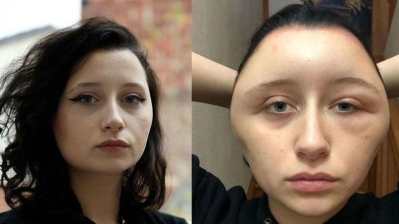 Pocas horas después de aplicarse el tinte, empezó a notar como la parte superior de la cabeza se hinchaba, al igual que la lengua."No me reconozco en las fotos, mi cabeza parecía una bombilla. No podía ni respirar", expresaba la joven.