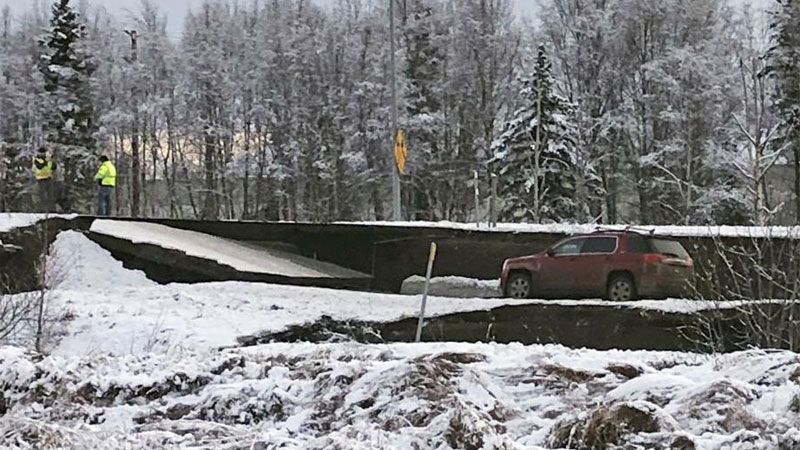 Dos terremotos consecutivos, de 7,0 y 5,8 grados, sacudieron la mañana del viernes (hora local) la ciudad de Anchorage, Alaska, provocando grietas en los edificios y carreteras y destrozos varios en mobiliario urbano. El Servicio Geológico de los Estados Unidos dice que el epicentro del primer terremoto, el más potente, estuvo centrado a unos 12 kilómetros al norte de esta ciudad, la más grande del estado norteño del país, con casi 300.000 habitantes.
