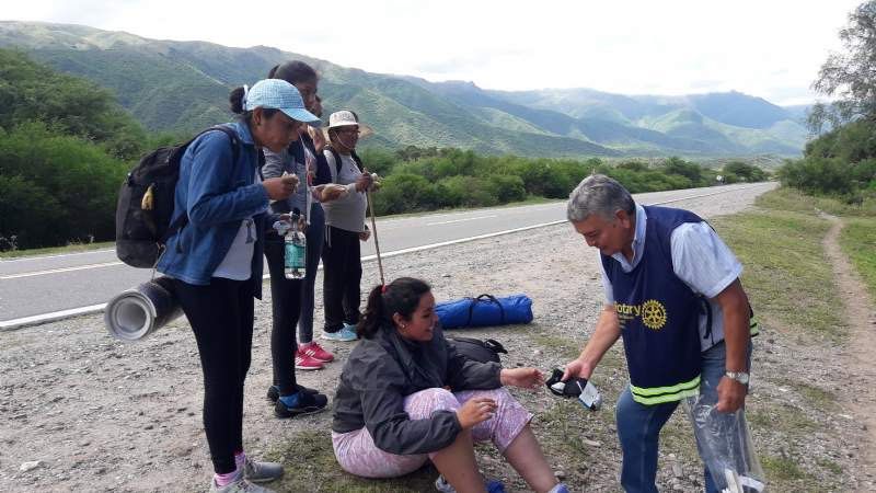 Cerca de la cuestecilla se instaló un puesto de los Bomberos Voluntarios de Valle Viejo donde se brinda asistencia, en Villa Noriega El Rotary Club San Fernando hace lo propio entregando comida, hidratación, asistencia médica y hasta medias para los cansados pie de los caminantes.