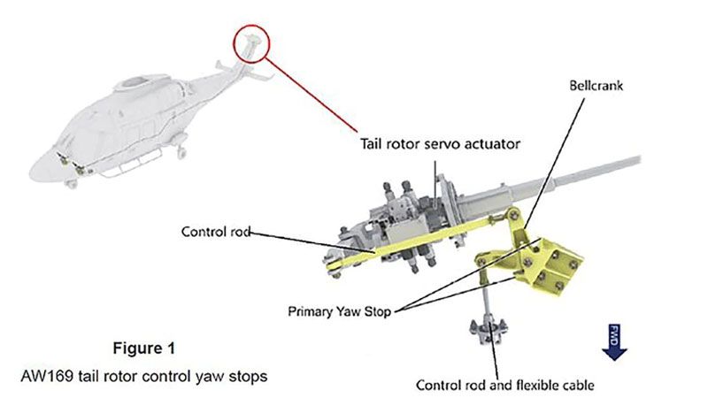 El informe señala que: "El sistema del rotor de cola se inspeccionó por primera vez en el lugar del accidente. Se identificó que el mecanismo de la palanca de entrada no estaba conectado al eje de control. El pasador, los espaciadores y uno de los cojinetes de localización faltaban en la palanca. La tuerca de bloqueo y el soporte del pasador se encontraron sueltos en el carenado del rotor de cola y se unieron entre sí (deben ser componentes separados)".