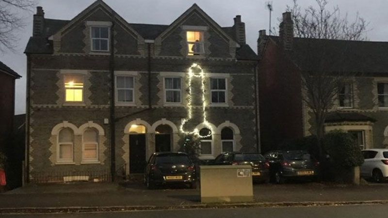 Según explican los vecinos de la zona, la peculiar decoración navideña apareció en la calle Berkshire el lunes por la tarde y creen que esa casa pertenece a unos estudiantes.