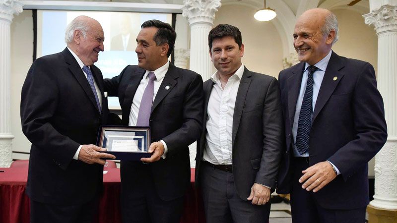 Finocchiaro y Domenichini entregaron una plaqueta en reconocimiento por su trayectoria a Taquini, de 83 años, quien visiblemente emocionado agradeció a las autoridades por el homenaje.