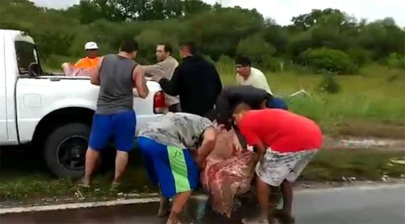 Tanto los conductores que pasaban por el lugar, como los peatones que caminaban por la zona se acercaron para llevarse la mercadería. En varios videos que circularon por las redes sociales los usuarios registraron cómo cargaban los autos con la carne, más allá de que estuviera tirada en el camino sin la cadena de frío.