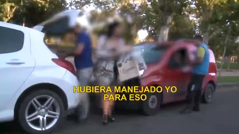 "Me hubiera dejado manejar a mí el pelo... este", repetía a los gritos y mientras reconocía que su marido había tomado diferentes bebidas alcohólicas durante el brindis, agregó: "Encima es colectivero, debería saber que no tiene que tomar...".