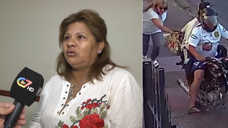 Una cámara de seguridad grabó el ataque que sufrió una docente de 52 años por parte de dos motochorros, quienes para robarle la cartera la tiraron al piso y le provocaron lesiones. Pasó en Garibaldi, entre Pedro León Gallo y San Martín, a plena luz del día.