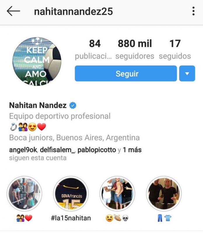 En el último día del 2018, en las redes sociales se viralizó una nueva foto de perfil de Nahitan Nández en su cuenta de Instagram que preocupó a muchos hinchas de Boca. La misma decía 'keep calm and amo il calcio', justo cuando se habla de que el Cagliari lo quiere. Pero todo indica que el uruguayo no fue quien puso esa imagen, que poco después ya fue reemplazada por una foto del uruguayo junto a su mujer.