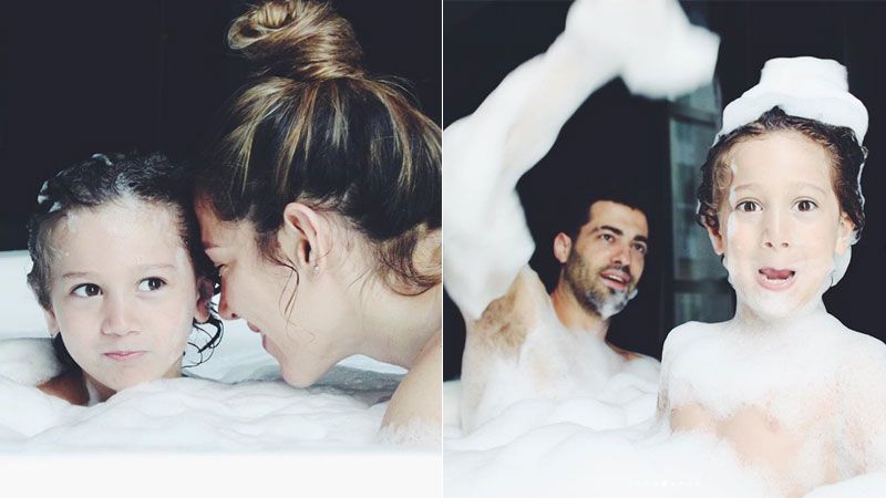 La actriz mostró una seguidilla de imágenes en las que se los ve a los tres compartiendo un baño, enjabonados. Sin embargo, estas fotografías fueron duramente criticadas por muchos de sus seguidores porque interpretaron que Caiazza estaba desnudo frente a Momo.