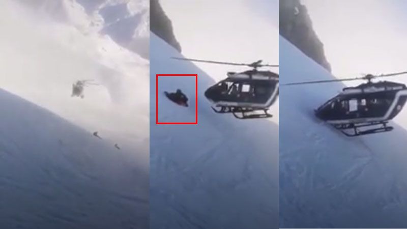 El piloto del helicóptero mostró una impresionante precisión durante la operación de rescate: acercó la aeronave a la montaña de tal manera que su nariz tocó la nieve y las paletas del rotor estuvieron a centímetros de la pendiente.