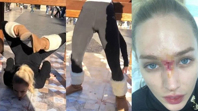 La contorsionista está de vacaciones en Europa y tuvieron que darle cinco puntos en la nariz por un durísimo accidente. ¡Mirá!