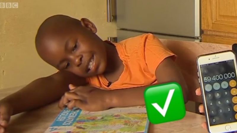 El video en el que resuelve largas sumas, grabado por un policía local, se hizo viral. No hay cifra difícil que se resista al pequeño Sibahle.