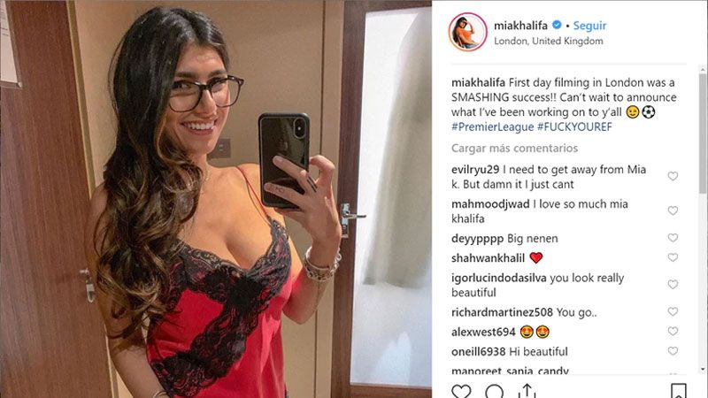 La ex actriz de cine para adultos, Mia Khalifa, publicó una fotografía en su cuenta de Instagram en la que anunció su participación en el rodaje de una película sobre la liga inglesa de fútbol, Premier League, y en donde posa con una playera del cuadro inglés del West Ham.