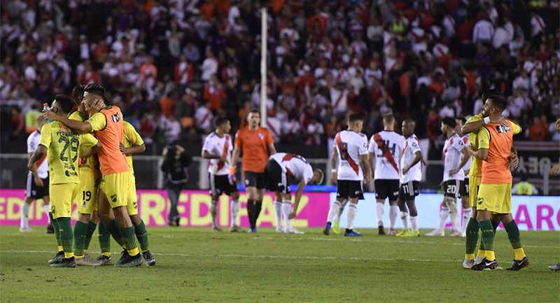 Defensa y Justicia, el único escolta e invicto del campeonato, sorprendió a River Plate en el estadio Monumental y le ganó 1-0 para achicar a sólo tres puntos la distancia con el líder Racing Club, en el partido pendiente de la octava fecha de la Superliga y que levantó el telón de la actividad oficial de 2019.