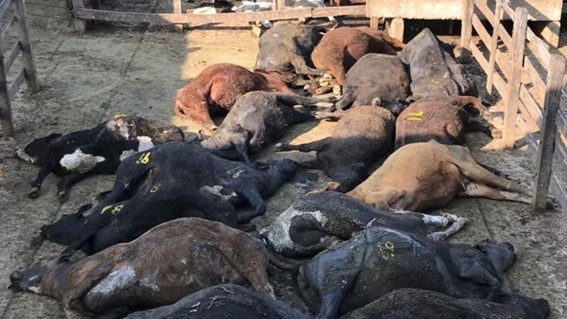 También habría decenas de animales muertos, por el mismo motivo, en distintos establecimientos de diferentes zonas del país, Por ahora no se conoce el número, pero diversos testimonios confirman que hubo decenas de animales muertos.