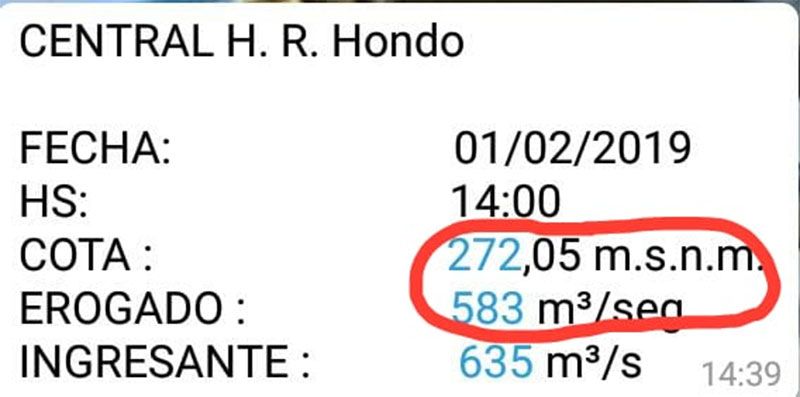 "La erogación al río genera la creciente aguas abajo que a nosotros podría afectarnos recién arriba de los 800 M3/s, de todas maneras el monitoreo es permanente" informó a Diario Panorama, Alfredo García, jefe de la Protección Civil de Las Termas de Río Hondo.