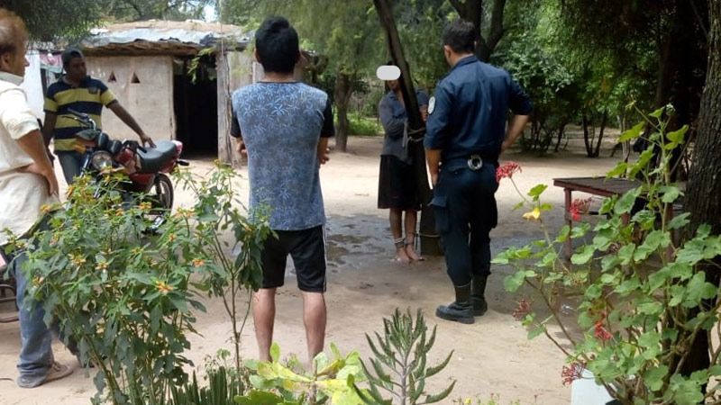 Al llegar al lugar, los agentes encontraron a una persona amarrada con alambre y piolas en un árbol, al interiorizarse de la situación, se supo que el autor seria de apellido Tevez, quien al ser entrevistado explicó el motivo de su accionar, aduciendo que el sujeto amarrado era el ciudadano Gomez, ex pareja de su madre y que lo había atado debido a que momentos antes ingresó a la casa y la amenazó con un arma de fuego.
