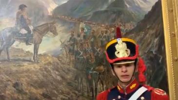 El hecho ocurrió durante el descubrimiento de un retrato del General San Martín. Al ver la imagen del Libertador, el joven, que se encontraba al lado del cuadro, no consiguió contener las lágrimas.