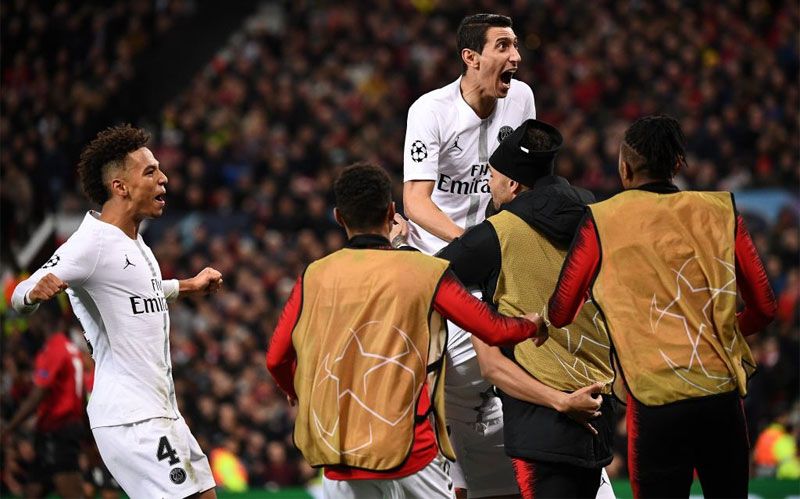 Paris Saint Germain (PSG), con dos asistencias del argentino Ángel Di María, venció hoy como visitante a Manchester United 2 a 0, en el partido de ida de los octavos de final de la Champions League.