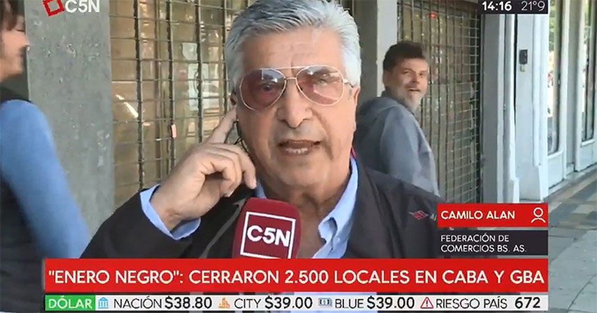 Mira al “PELOTUDO” de Alfredo Casero pasando por atras de un movil de @C5N en vivo y burlándose de la crisis económica de Federación de Comercio de Buenos Aires.