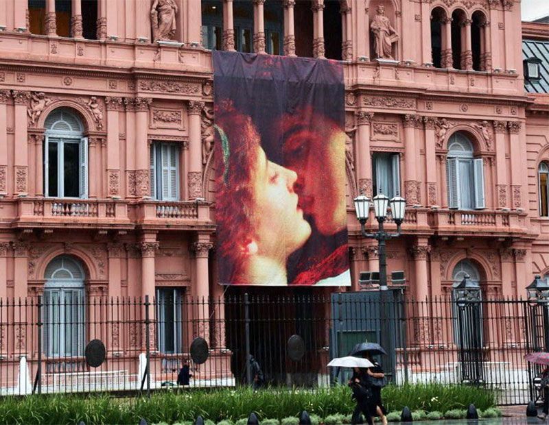 Con una bandera que muestra el detalle del beso entre Romeo y Julieta, la Casa Rosada se suma a la celebración de San Valentín.#FelizSanValentínhttps://t.co/JjS7PXz4Iz pic.twitter.com/5bupguuC5N