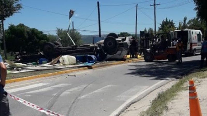 Un camionero de 28 años murió y otra persona de 24 resultó lesionada cerca del mediodía del viernes luego de que volcara el vehículo en el que se conducía, en la rotonda de ingreso a la ciudad de Mina Clavero.