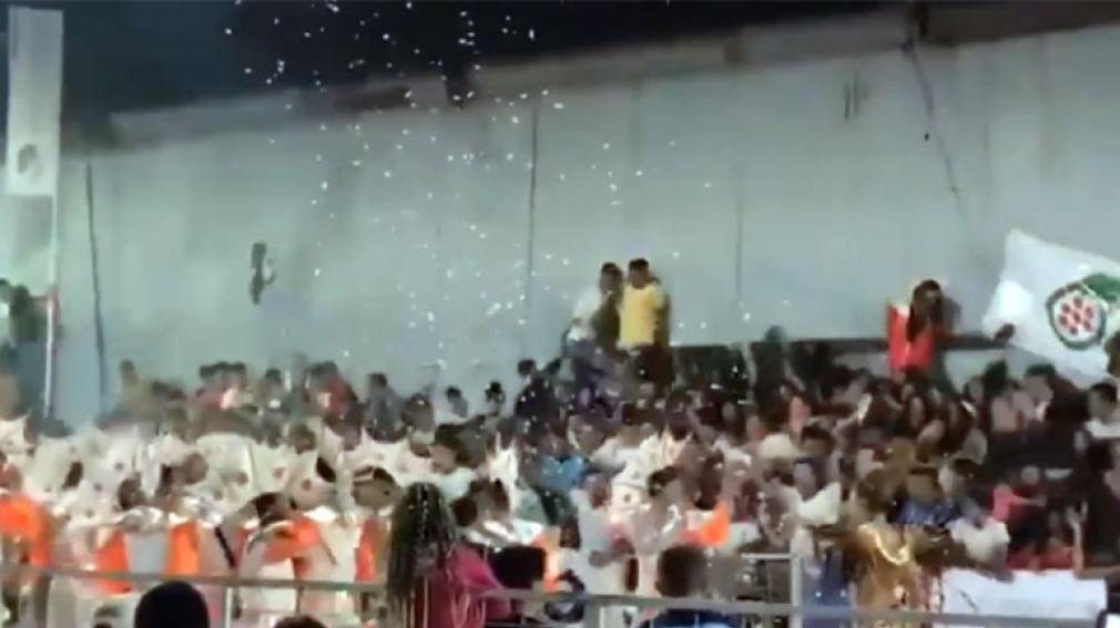 El episodio ocurrió al derrumbarse una tribuna de caño y chapa ubicada al final del corsódromo, cuando la batucada La Tribu transitaba los últimos metros ante decenas de personas que saltaban y cantaban.