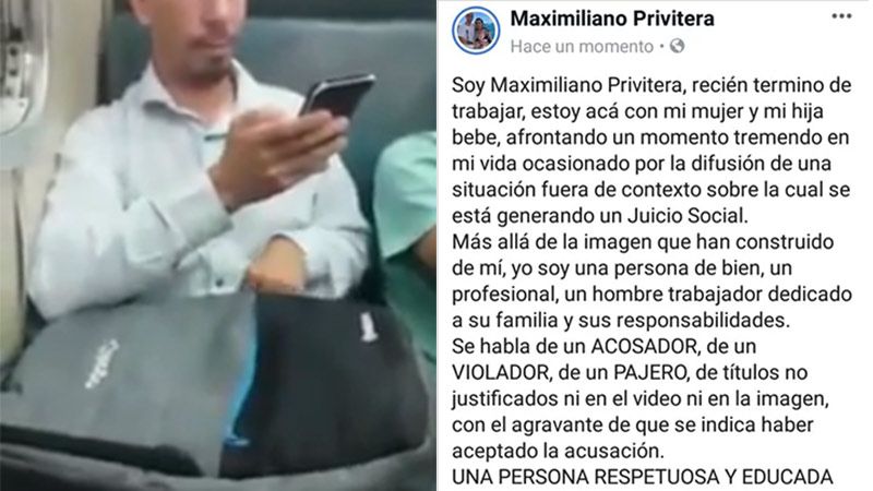 “Soy Maximiliano Privitera, recién termino de trabajar, estoy acá con mi mujer y mi hija bebé, afrontando un momento tremendo en mi vida”. Así comienza la defensa del hombre cuya imagen recorrió las redes sociales luego de que una chica lo grabara en el tren Urquiza.