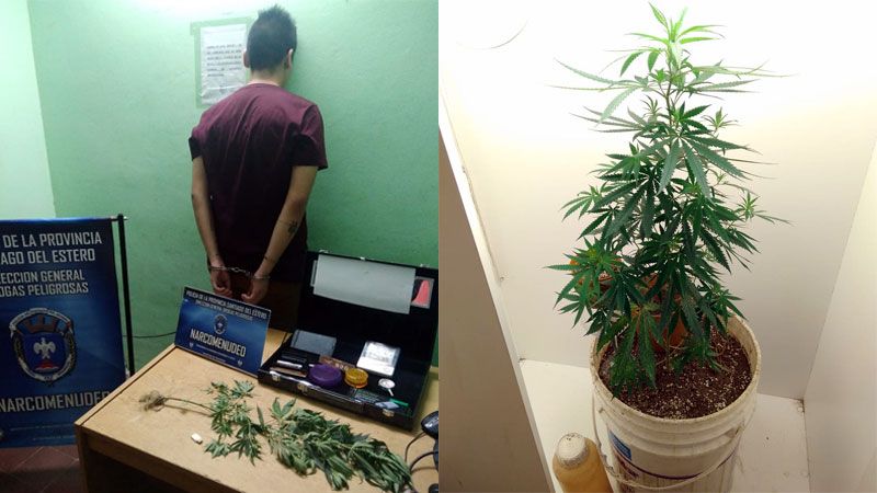 Allí se realizó un allanamiento por supuestas amenazas. Al requisar el lugar, los uniformados encontraron adentro de un ropero una planta de marihuana, de 79 centímetros de largo y 23 semillas, conservadas por un sistema invernadero con luz artificial.