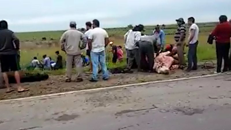 Ademas indicaron que el conductor del camión cargado con vacas, perdió el control del vehículo luego de haberse rozado con otro camión. En el lugar quedaron esparcidos los animales de los cuales hubo varios vacunos muertos por el accidente.
