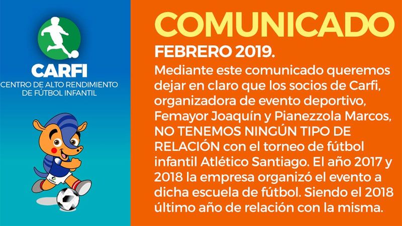 A través de un comunicado el CARFI dio a conocer que no forma parte de la organización del torneo de fútbol infantil de Atlético Santiago.