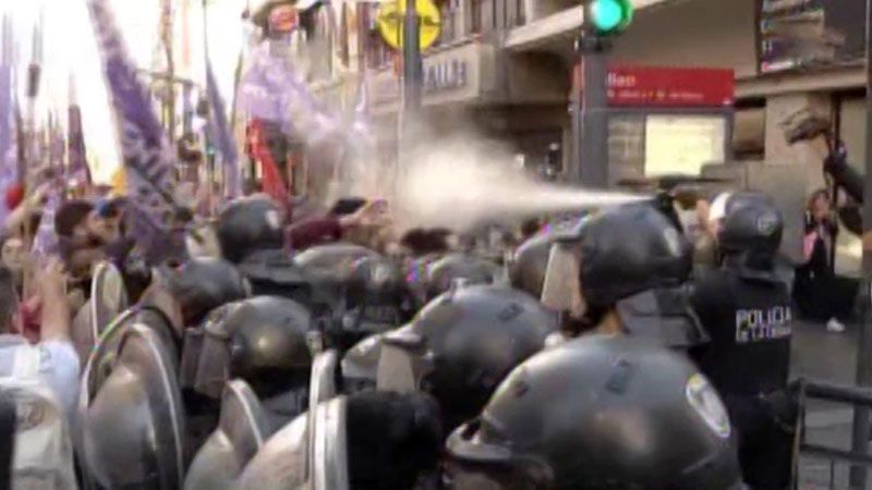 Los efectivos utilizaron sus escudos para empujar a los manifestantes y arrojaron gas pimienta. Sin embargo, no lograron su objetivo: los trabajadores se reagruparon y se mantuvieron sobre la avenida, impidiendo la circulación de automóviles.