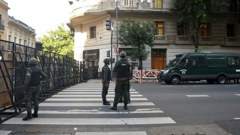 Se realizó un gran operativo policial y está todo vallado. Sobre la calle Perón y Callao, por ejemplo, no le permitieron pasar a nadie salvó a quienes trabajan en esa calle o quienes viven ahí. A cada uno que llega, dos oficiales le preguntaban a dónde va y por qué.