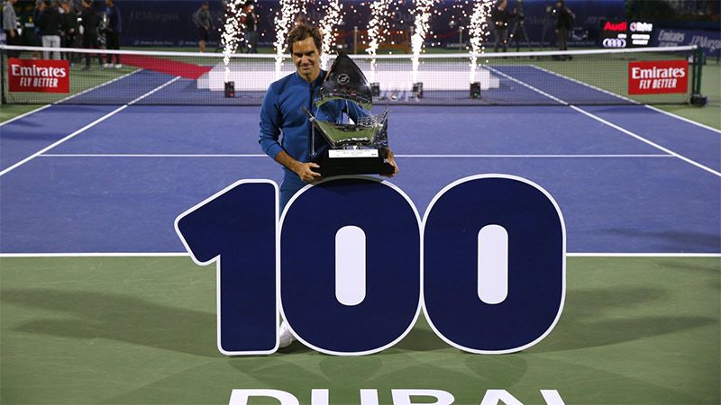 El tenista suizo Roger Federer llegó hoy a los 100 títulos en su carrera tras vencer al griego Stefanos Tsitsipas por 6-4 y 6-4, en el torneo de tenis de Dubai, de la categoría ATP 500 y que se desarrolla sobre canchas duras.