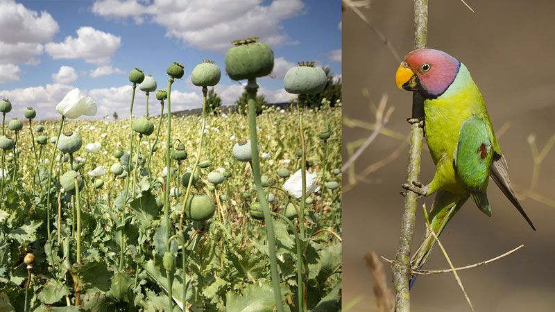 Los propietarios de las plantaciones legales de opio en India llevan varios años enfrentándose a una plaga que no encuentran manera de combatir de manera efectiva. Se trata de los loros adictos a su cultivo que les roban varias veces al día causando estragos en las cosechas. Han pedido ayuda al Gobierno, pero esta no llega y ya no saben cómo combatir a estos animales que ni siquiera temen por su vida a la hora de conseguir su dosis de opiáceos.