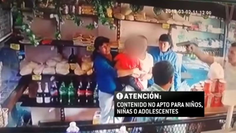 La cámara de seguridad del comercio permitieron ver claramente al asaltante que sin pensarlo amenaza de muerte al pequeño, mientras reclama elementos de valor a los adultos.