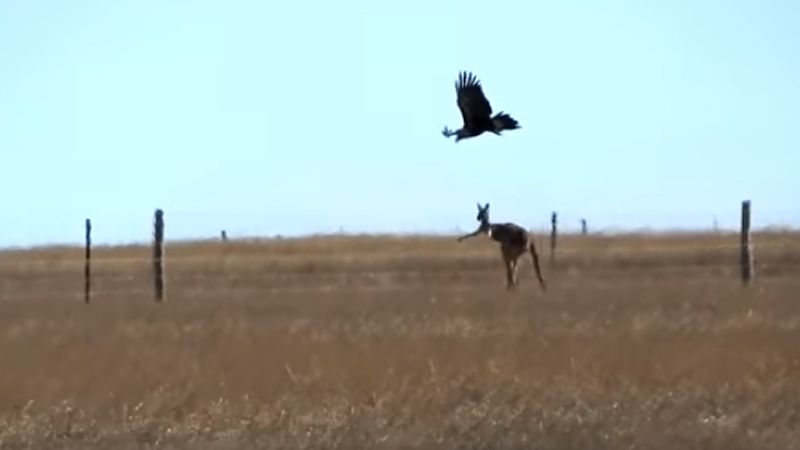 En la grabación se ve cómo el ave rapaz, seguramente hambrienta, se abalanza hasta en tres ocasiones sobre el marsupial, que se defiende y trata de huir de su atacante.