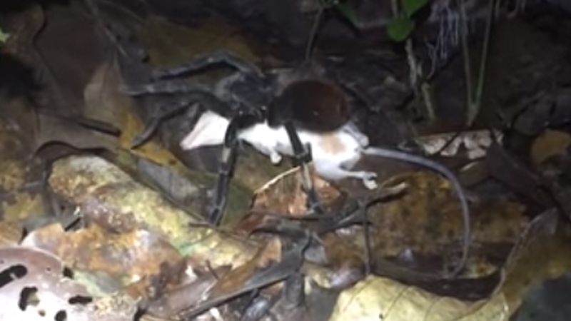 Un impactante video difundido por National Geographic sería el primer registro audiovisual se una tarántula gigante comiéndose a una zarigüeya.