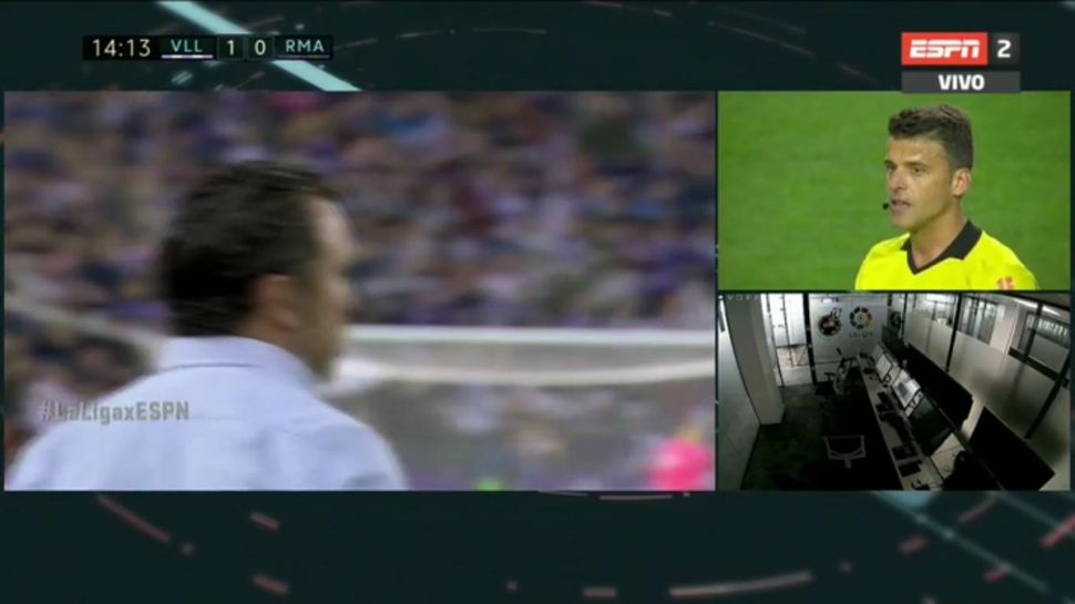 Tras el primer gol anulado al Real Valladolid la retransmisión televiiva ofreció una imagen muy curiosa. Una vez que Sergi Guardiola hizo el tanto, éste fue revisado por posible fuera de juego, que posteriormente se demostró que lo era.