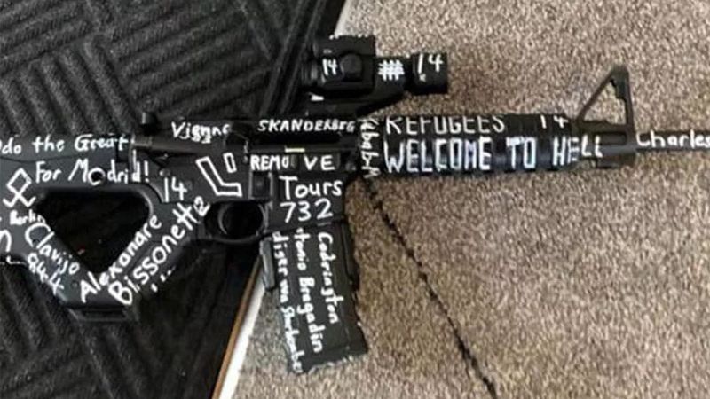 Las inscripciones que hizo sobre los rifles semiautomáticos y los cartuchos hacen referencia a otras masacres cometidas contra migrantes, así como también viejas batallas entre cristianos y musulmanes.
