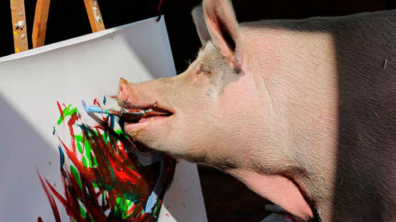 La cerdita fue rescatada del matadero en una pequeña ciudad de Sudáfrica. Ahora, este animal de apenas tres años de edad se ha convertido en un auténtico fenómeno de la pintura y sus obras se venden a miles de euros.