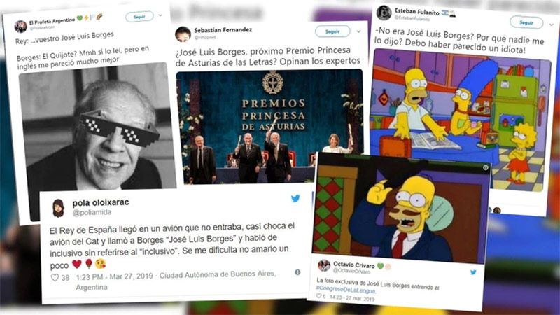 El monarca citó a uno de los grandes referentes de la literatura argentina, pero no estuvo muy atinado: "Vuestro José Luis Borges dejó escrito que el idioma no es sólo un instrumento de comunicación sino una tradición y un destino".