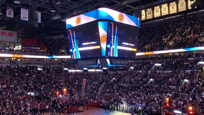 Ante un estadio repleto y apenas 10 minutos antes de comenzar el partido entre los Spurs y Cleveland Cavaliers, la emoción empezó a embargar no solamente a los argentinos presentes en el AT&T Center, de San Antonio, sino también a todos los fanáticos de los Spurs que aman a "Manu".