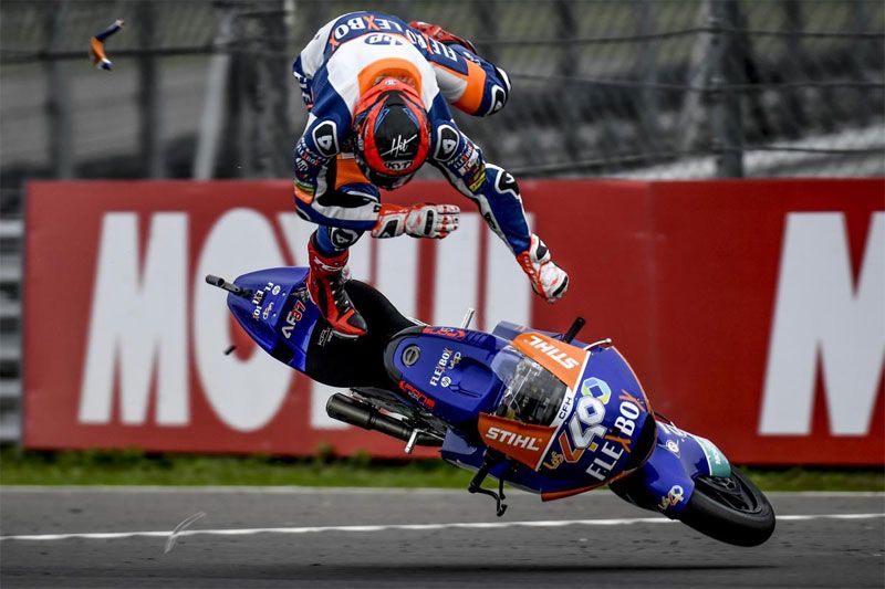 El español Augusto Fernández sufrió una doble fractura de cúbito y radio tras un accidente en la practica matutina.