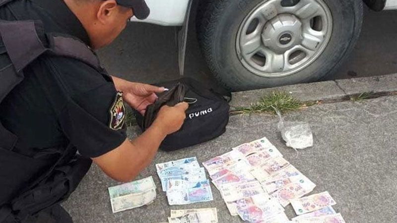Inmediatamente una patrulla de la División Seguridad Urbana se desplazó al lugar, durante la requisa secuestraron un envoltorio compacto con sustancia vegetal disecada, marihuana equivalente a 970 dosis y 4.200 pesos discriminados en billetes de baja denominación.