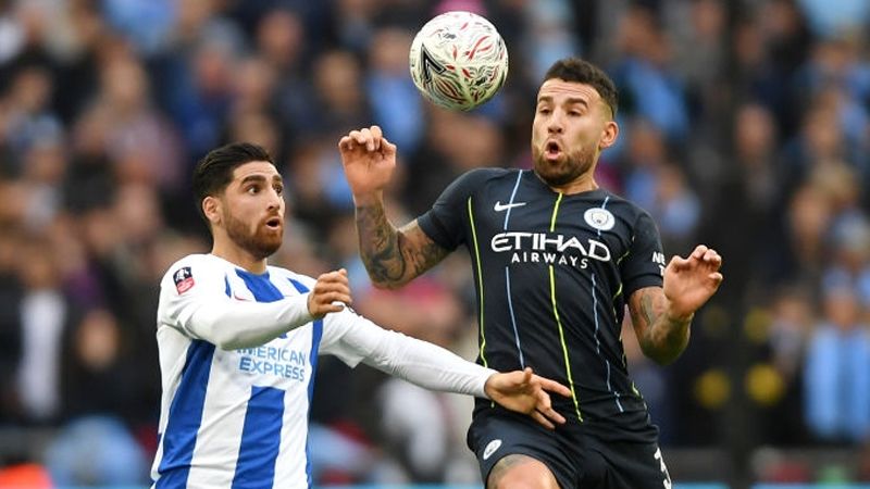 El Manchester City, con el defensor argentino Nicolás Otamendi como titular y sin Sergio Agüero, venció 1-0 al Brighton, en Wembley, y avanzó a la final de la FA Cup.