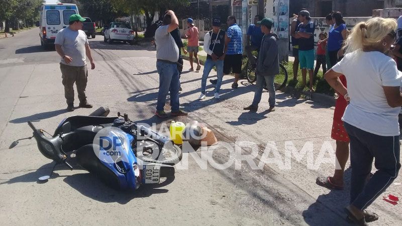 Una mujer chocó con su motocicleta con un remis cuando perseguía a dos malvivientes que momentos antes le habían robado. Sucedió en Viano y Segundo Araujo, del barrio 8 de Abril.