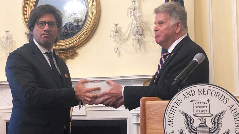 En el edificio del Archivo Nacional en la avenida Pennsylvania de Washington, el presidente del organismo, David Ferreiro, entregó una caja blanca, con el escudo oficial estadounidense y con un moño, al ministro de Justicia Germán Garavano, que no pudo contener las lágrimas cuando dio su discurso. Esa caja contenía 6 cds con decenas de miles de documentos de más de 16 agencias estadounidenses sobre la dictadura e incluso un poco antes, porque arrancan desde 1975.
