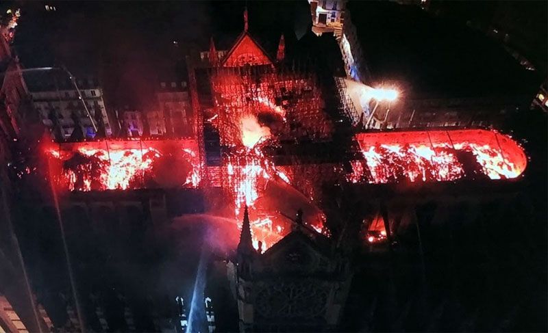 Las primeras imágenes del templo afectado por el fuego comenzaron a circular en las redes.