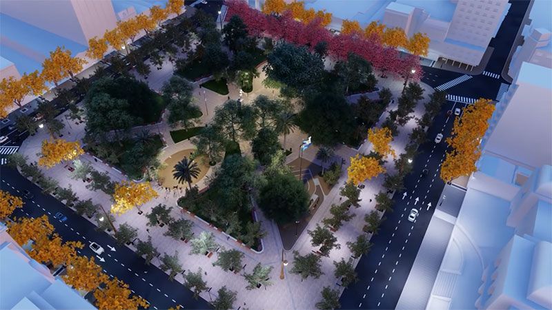 Renovarán la parquización, con elevaciones de sectores con césped. Se completará la triple hilera de naranjos.